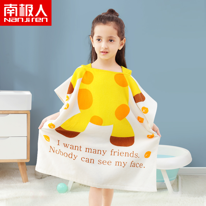 安健母婴专营店南极人儿童浴巾可穿中大童带帽斗篷宝宝纯棉吸水洗澡浴袍婴儿夏季瞬吸干爽 南极人正品